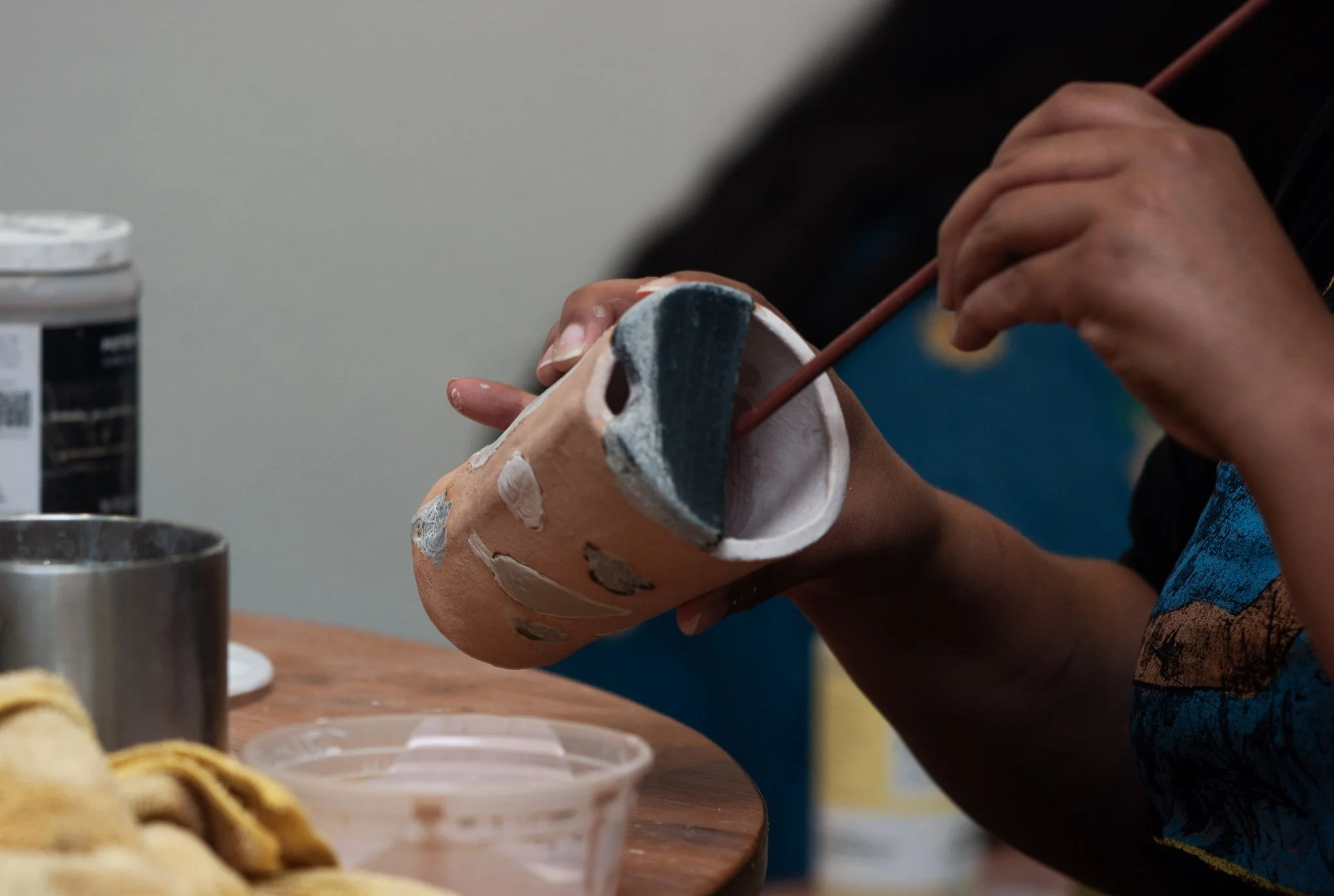 Student glazing their tumbler
